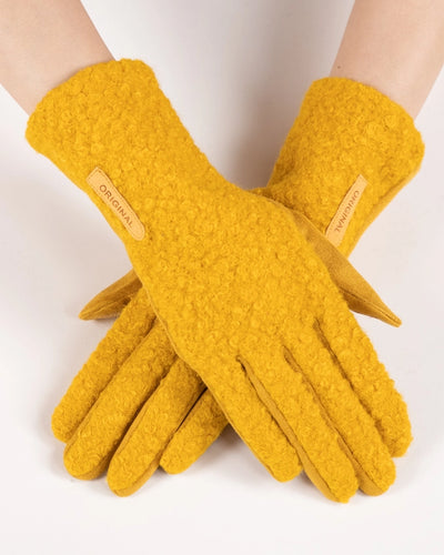 Boucle & Suede Touchscreen Gloves -Mustard