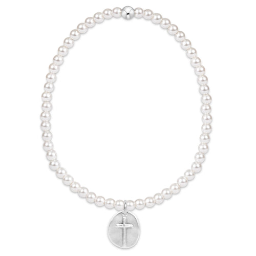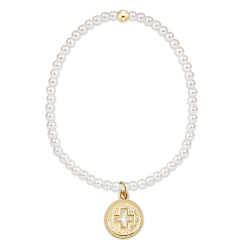 enewton Classic Pearl Bead Bracelet -3mm -Signature Cross Gold Disc