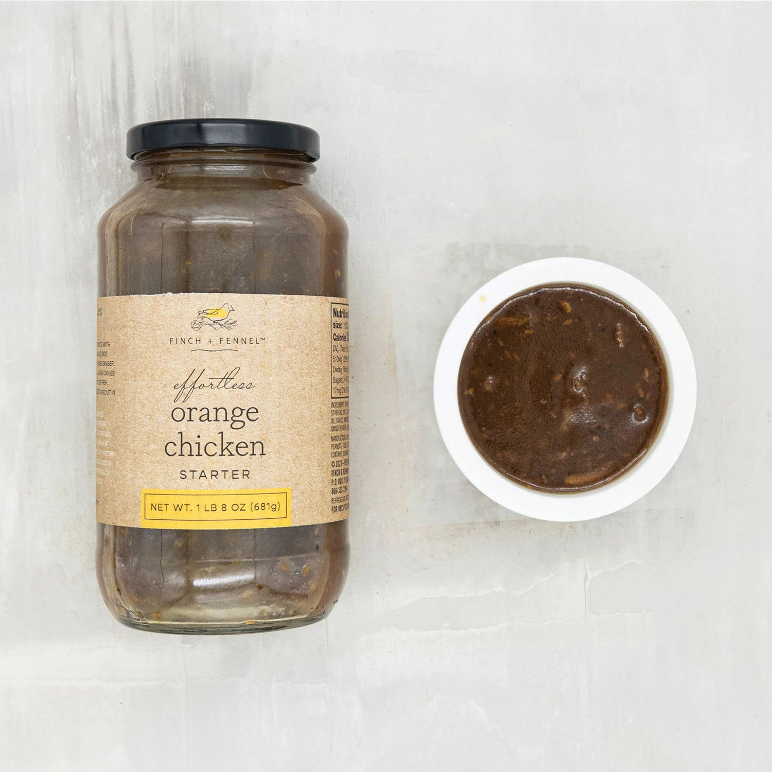 Our Effortless Orange Chicken Starter is a sweet Asian sauce made with orange juice, soy sauce, rice wine vinegar, garlic, and ginger. This sauce is versatile and can be used on tofu, chicken or fish. You can now recreate takeout in your own home!