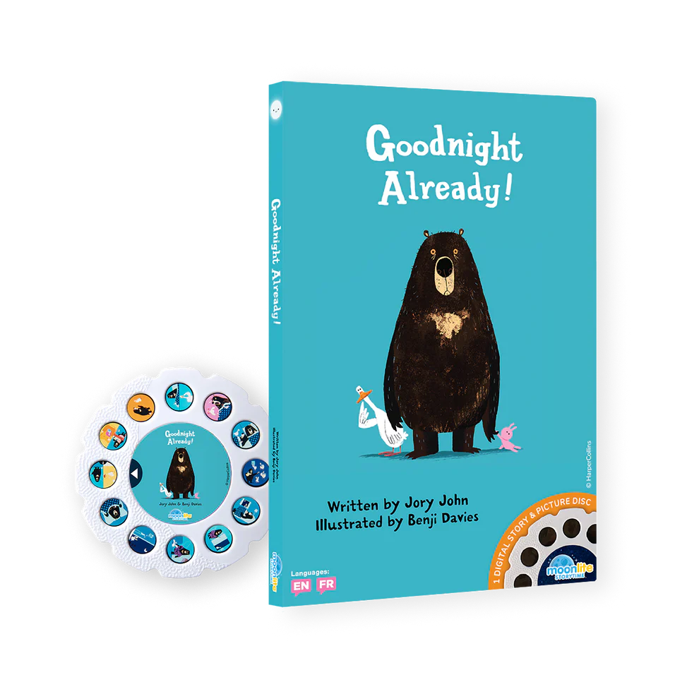 This product includes a picture disc and an activation code to download the story through the app. Once downloaded, you’ll have unlimited access to the story. Moonlite is a storytime system that creates an immersive reading experience. The story’s text appears on your phone’s screen, allowing for easy reading while projecting the images with the Moonlite projector (sold separately).