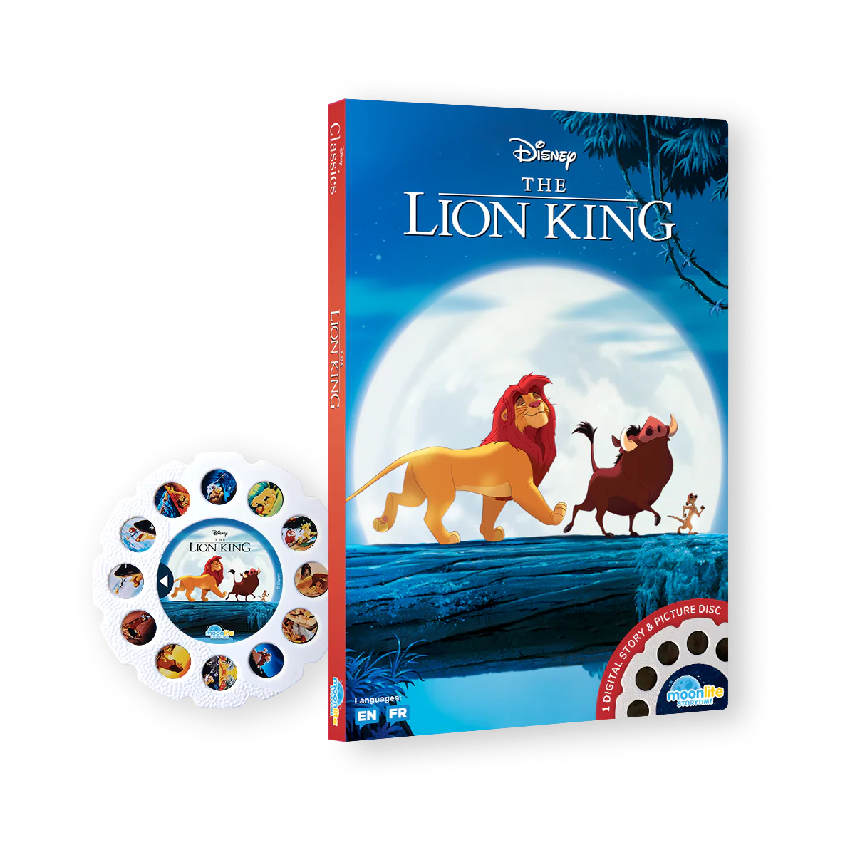 This product includes a picture disc and an activation code to download the story through the app. Once downloaded, you’ll have unlimited access to the story. Moonlite is a storytime system that creates an immersive reading experience. The story’s text appears on your phone’s screen, allowing for easy reading while projecting the images with the Moonlite projector (sold separately).