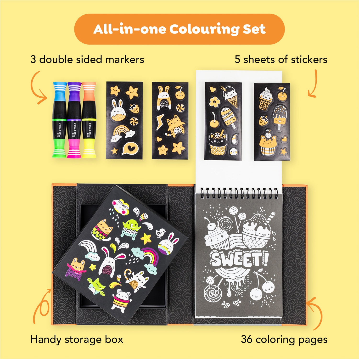 - 3 x vibrant double sided markers