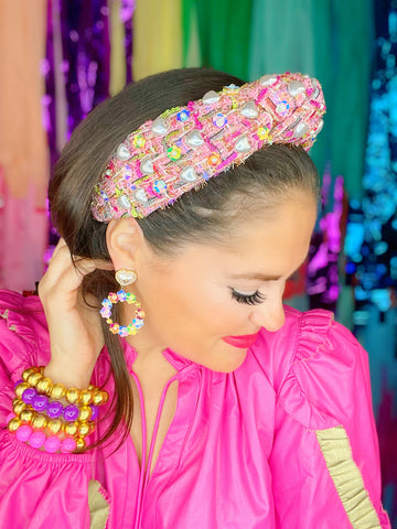 Pink Tweed Headband w/ Hearts & Flowers