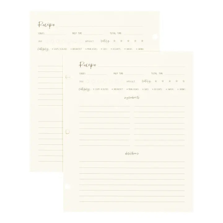 Enhance your recipe collection with the Petite Recipe Page Set. These high-quality pages are designed to work with the Strawberry Meadow Petite Recipe Binder, providing ample space for your culinary creations. Ideal for gifting alongside the binder or for anyone seeking to expand their recipe organization.